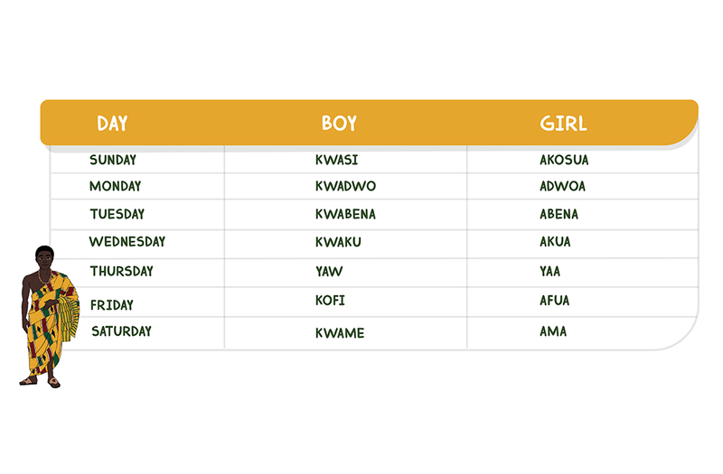 In Ashanti culture, a baby is given a name based on the day of the week they were born. Each name carries a special meaning. Do you know your Ashanti name?